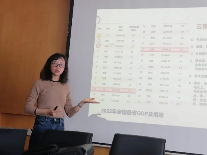 作为本次分享会的主讲人,来自云南玉溪师范学院的龙海雯老师为我们分享了她最新的研究兴趣以及个人经历。龙老师介绍了她在绿色经济领域所从事的研究主题与研究思路,她的研究包括数字经济的发展以及数字经济对绿色经济的影响机制;之后她为我们介绍了云南省经济社会发展现状,也分享了云南省主要城市的旅游资源、特色风光。她的报告不仅展示了她的研究兴趣,也充满了个人风采和人生感悟;她对云南自然风光的介绍更是有声有色,别具一格,令人耳目一新,心驰神往。