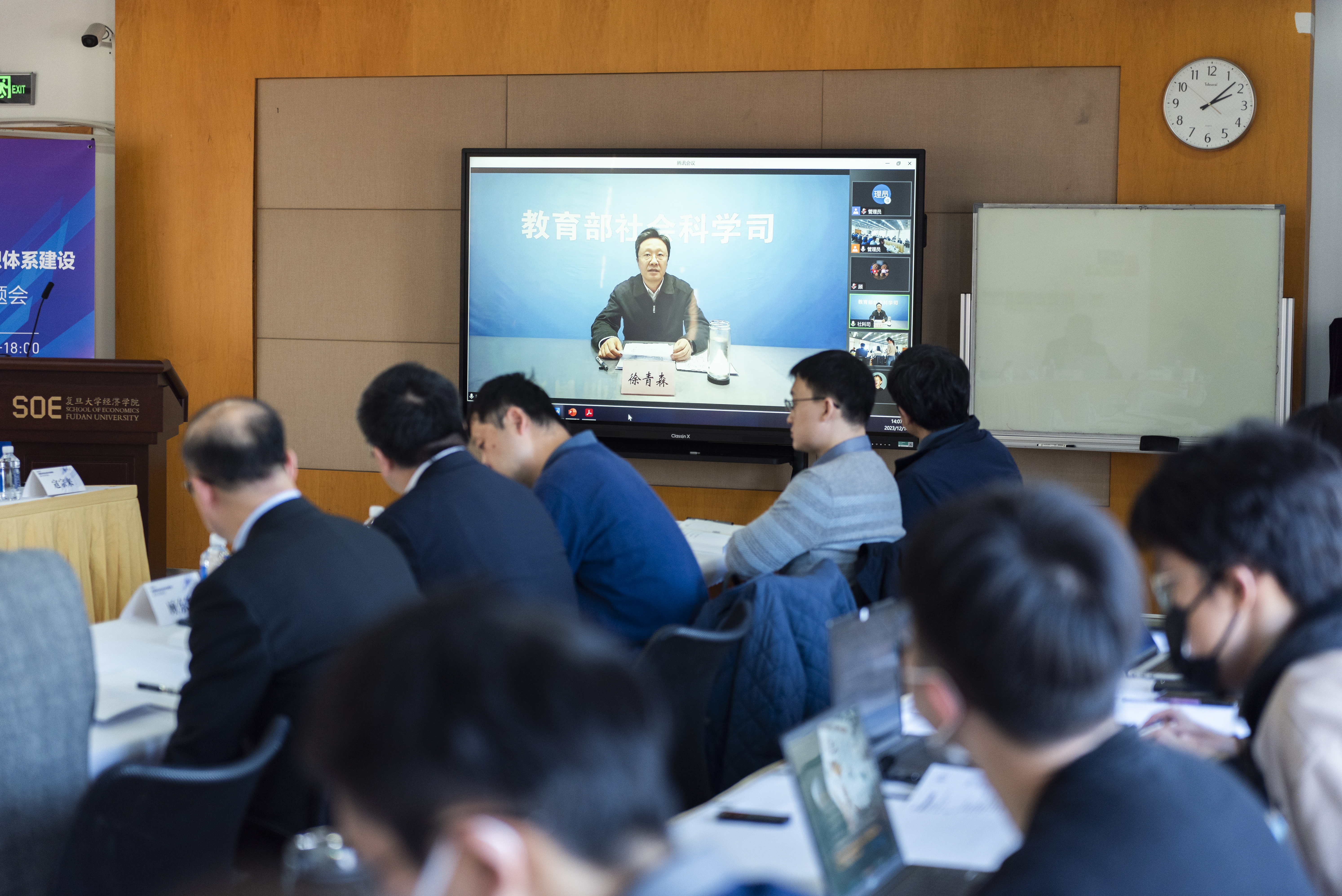 教育部社科司司长徐青森线上发表了致辞,他指出,构建中国经济学自主知识体系是习总书记提出的时代命题,也是哲学社会科学高质量发展的重要方向。徐司长强调,中国经济的独特发展路径和实践经验需要我们在理论上进行系统阐释和总结,中国经济学自主知识体系的建设,不仅对推动理论创新具有重要意义,也是对科研组织模式变革的积极探索。