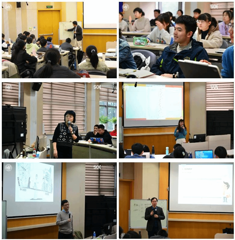 以“走进经济学”主题讲座为例,陈钊老师用经典博弈模型、信息不对称理论以及自身对中国研究的实例,说明了经济学研究的“有趣”之处。原来同学们口中的网红语“内卷”可以用囚犯困境博弈来刻画;原来没收到面试通知就去参加“霸王面”也是一个经济学问题;原来经济学研究可以对“意料之外”的政策后果给出一个“情理之中”的解释。同学们认识到经济学并不是空中楼阁,不是冷冰冰的数据,是有趣而生动的。最后,陈钊老师鼓励同学们可以多和小铺商贩、司机和亲友等交流,于生活细微之处感受经济变化,真正“走进经济学”。