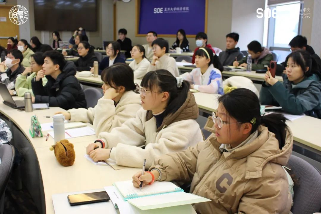 1月30日至2月2日,冬令营学员们陆续参加了由刘宇、谢一青、左雪静、陈钊和刘庆富教授带来的涵盖财政税收、国际贸易和金融科技等5大专题的讲座。为了适应高中生的知识结构,老师们在课程中阐述了很多案例来帮助大家理解。因材施教、寓教于乐,课程整体学习气氛活泼。教授们积极引导学生们学思结合,鼓励大家以经济学思维分析社会现象,以经济学的视角去深入认识这个世界。