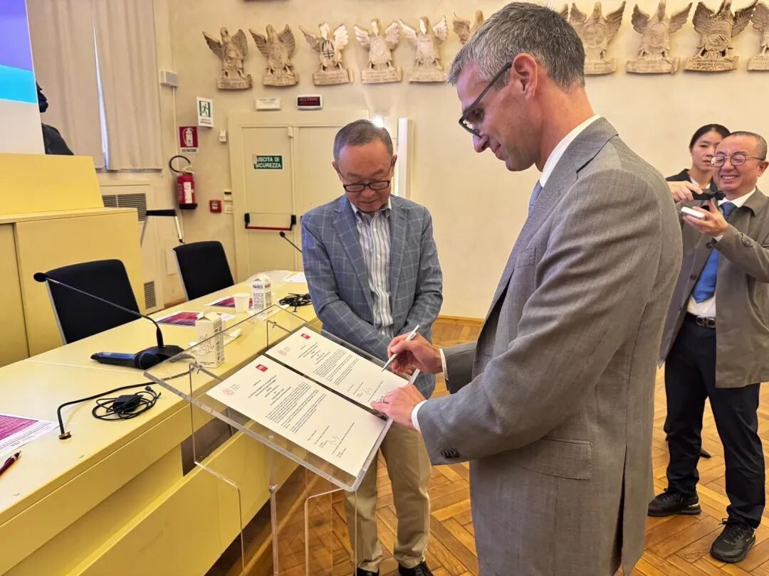 仪式上,帕多瓦大学经管学院院长米歇尔・法布里齐教授与成人直播