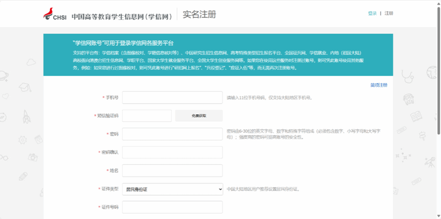 学信网账号(未注册考生需先在“中国研究生招生信息网”完成注册,绑定个人实名信息)