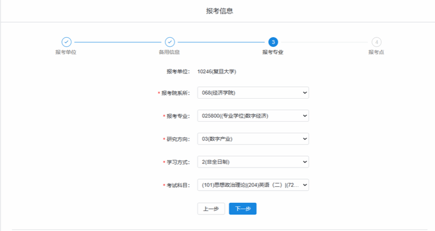 注:以上图示为非全日制数字经济专业考生所填界面,仅供参考。