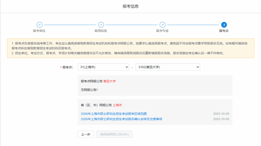 注:若不在上海工作/生活,可选择户籍地或工作地的其他报考点,以上图示仅供参考。