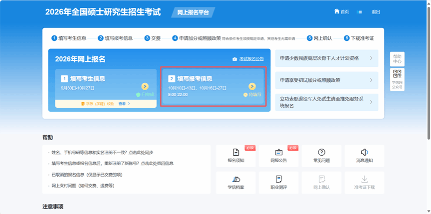 统考网报整体分为“填写考生信息”和“填写报考信息”两部分,必须先完成“考生信息”填写,才能进入“报考信息”环节,具体步骤如下: