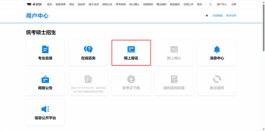 已注册考生:直接输入账号密码登录,点击成人直播“统考报名”按钮,选择“统考硕士招生”→“网上报名”,阅读《报名须知》后点击“确认”,进入下一步。