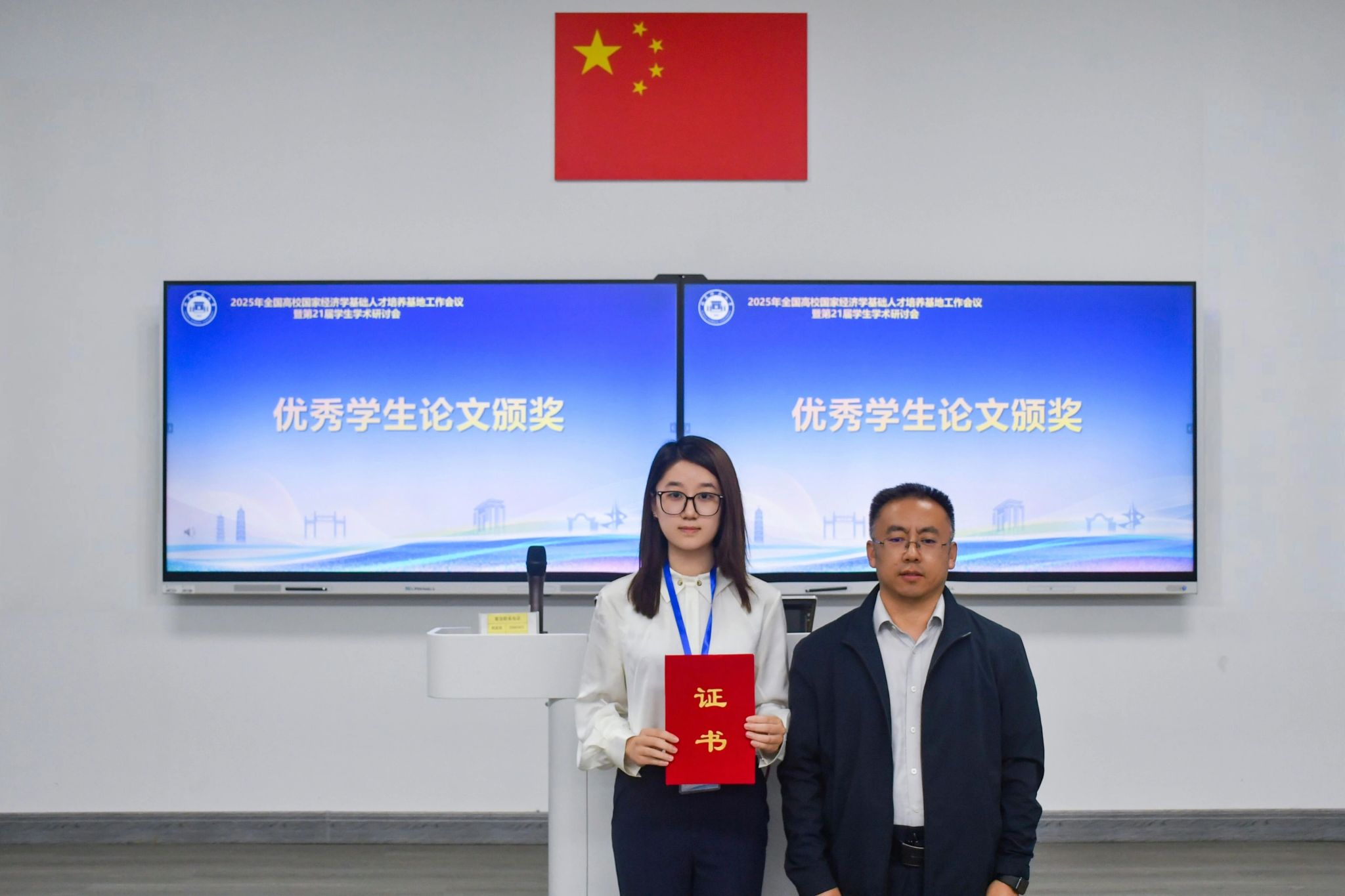 承办的全国高校“国家经济学基础人才培养基地”工作会议暨第 21 届学生学术研讨会。会上,两人分别作学术论文报告,最终双双获评“最佳论文”。