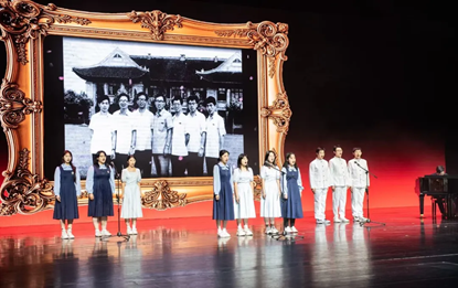 129合唱队的同学们借小组唱《飞来的花瓣》,表达了对师长的无限敬爱与感恩。