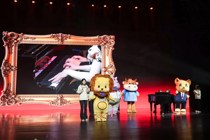 青年教师江嘉骏,辅导员宋思瑶,学生江婧亦、徐椿嵛主持。序曲中,由平由植校友与吴健豪同学合奏的欢快旋律,与动物玩偶们憨态可掬的模样相映成趣。