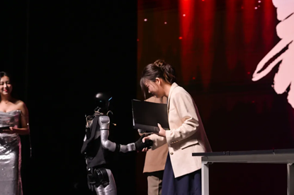 晚会第三篇章的主题,在第一个节目便被诠释得淋漓尽致——由成奕萱、宋词、杨蕴祺、周瑜慧四位同学和机器人舞者共同带来的舞蹈《机械狂想曲》,为观众提供了一段“创新性拉满”的观演体验。