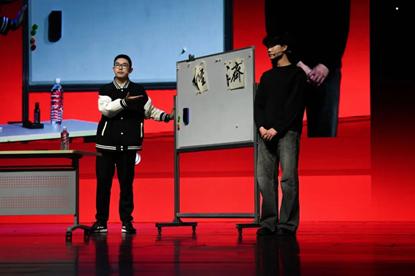 李骏扬、关星陆同学带来的创意表演《经世奇章》,更是通过魔术与书法的结合,献礼成人直播