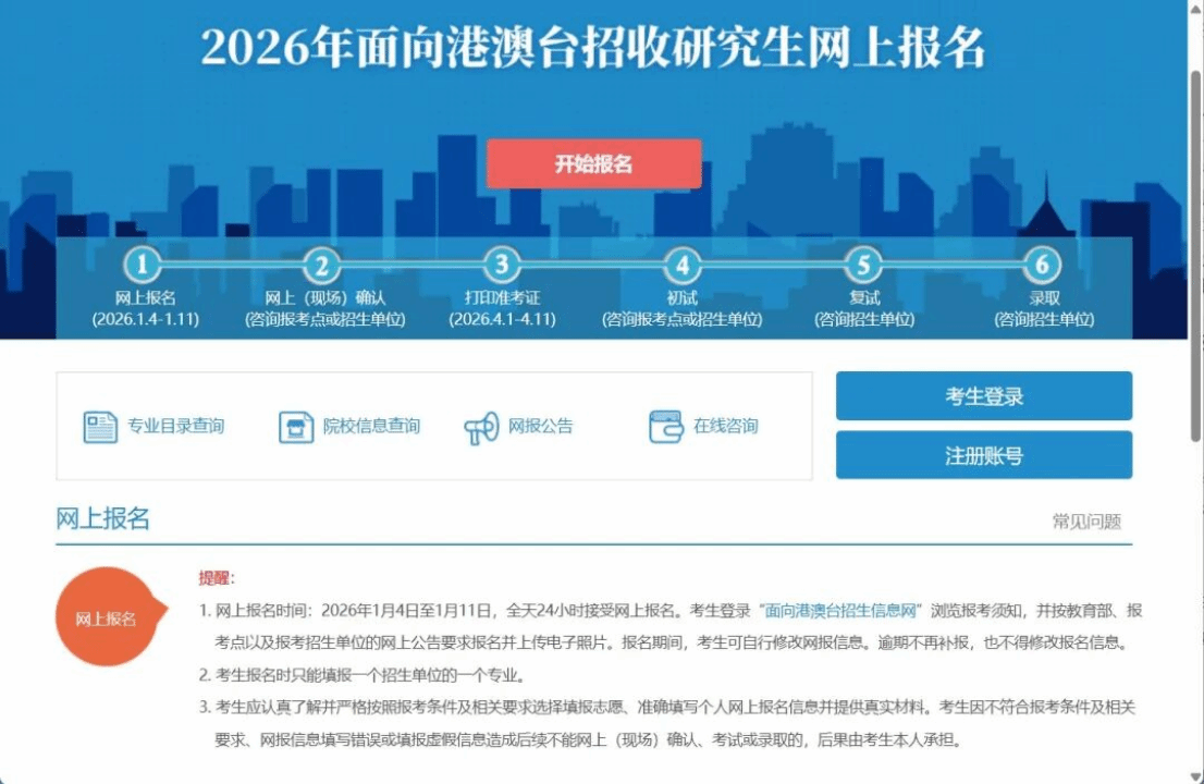 2026年面向香港地区、澳门地区、台湾地区招收研究生简章,报考核心信息公布如下: