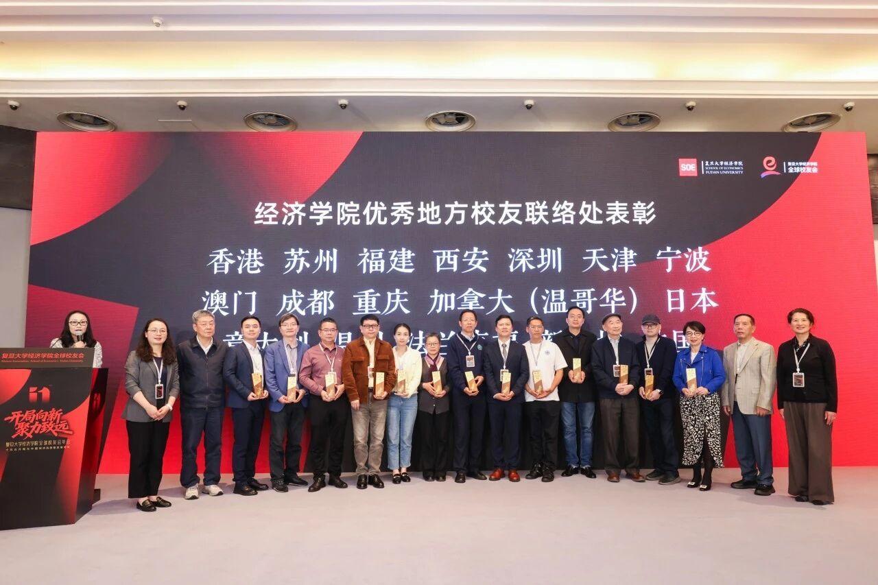 香港、苏州、福建、西安、深圳、天津、宁波、澳门、成都、重庆、温哥华、日本、意大利、温州、法兰克福、新加坡、法国共17个地方校友联络处荣获“2025年度优秀地方校友联络处”表彰,赵定理、俞乃奋、杨德红、詹璐上台为代表颁牌,勉励各地联络处继续携手共创辉煌。