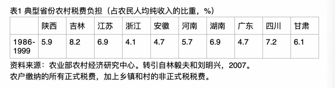在显性层面,农民长期承担着农业税、村提留、乡统筹等法定税费。1980年代初家庭联产承包责任制推行后,农村税费制度逐步形成,1991年《农民承担费用和劳务管理条例》确立“三提五统”制度,农民承担着法定与非法定的双重负担;2000年农村税费改革试点启动,取消乡统筹、劳动积累工等,2006年农业税全面取消,乡村公共服务资金改由财政转移支付保障。从10个包含了东中西地区的典型省份数据来看,1986-1999年,陕西、吉林、四川等省份农民总负担率在某些年份最高达9.5%,即便是浙江、广东等经济较发达省份,也存在不同程度的税费负担。