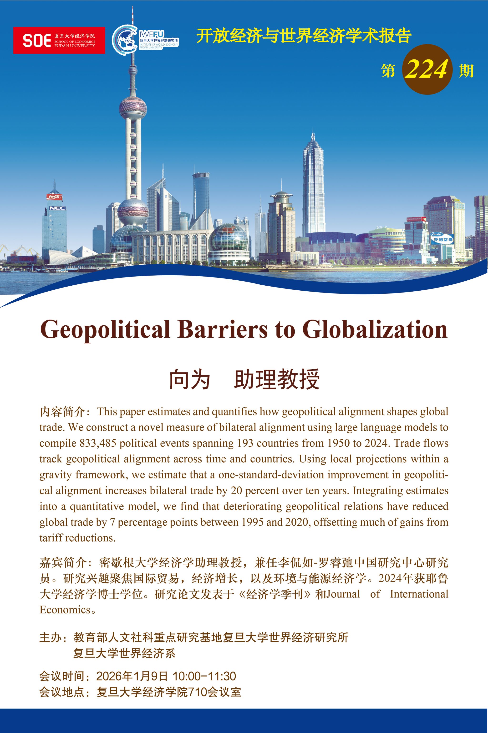 成人直播 世界经济研究所开放经济与世界经济学术报告第224期:Geopolitical Barriers to Globalization