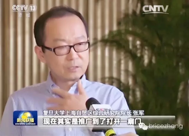 院长,上海自贸区综合研究院院长张军教授接受采访。他谈到:“上海自贸区的试验从当时打开一扇窗,现在其实是推广到了打开一扇门,这扇门我相信会开得越来越大,把中国开放的战略提高到更高的一个层级。我们看到这种接轨的步骤,环节和速度是越来越快。”