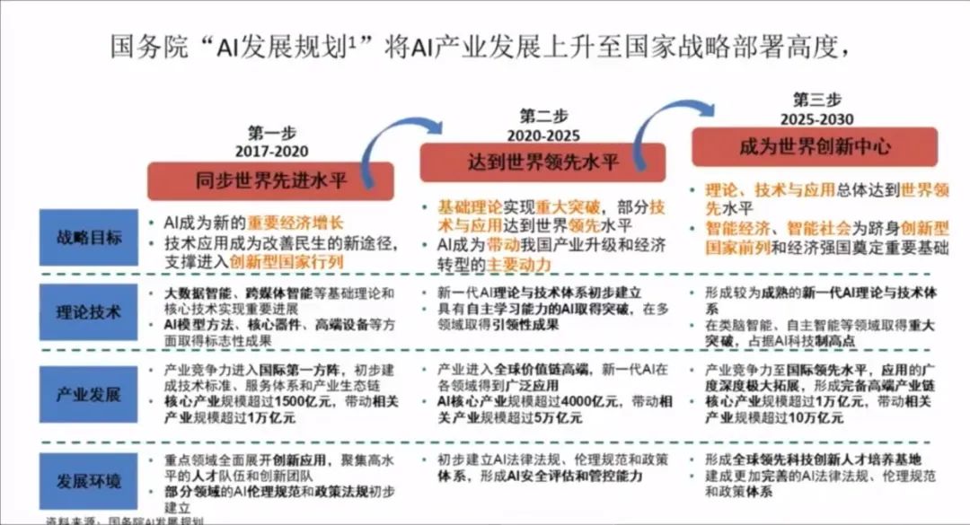 国务院制定了三个人工智能发展规划,把人工智能产业发展上升到国家战略的高度。