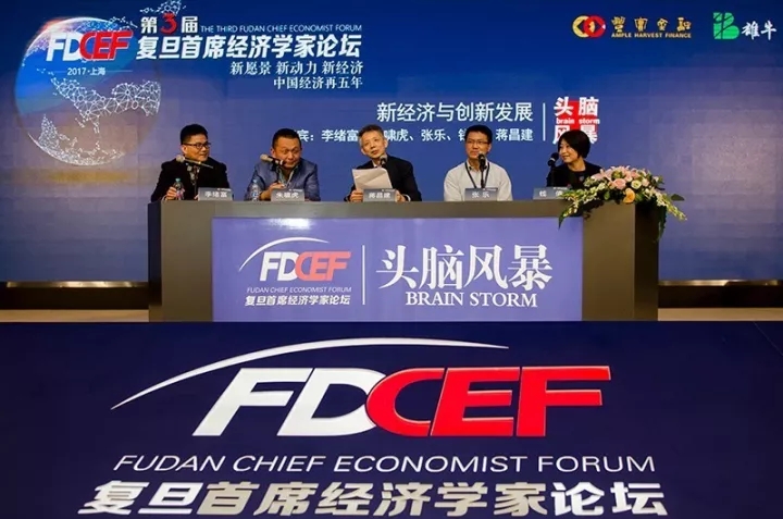 ▲首席经济学家、特邀业界嘉宾头脑风暴会上,以“新经济与创新发展”为主题,李绪富、朱啸虎、张乐、钱倩和蒋昌建进行深度交流