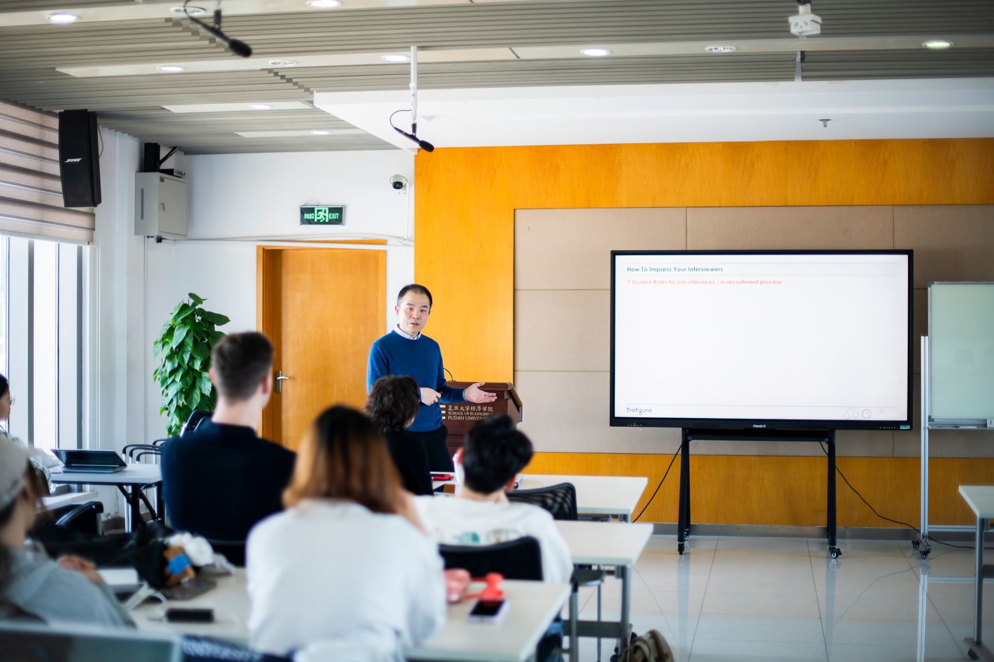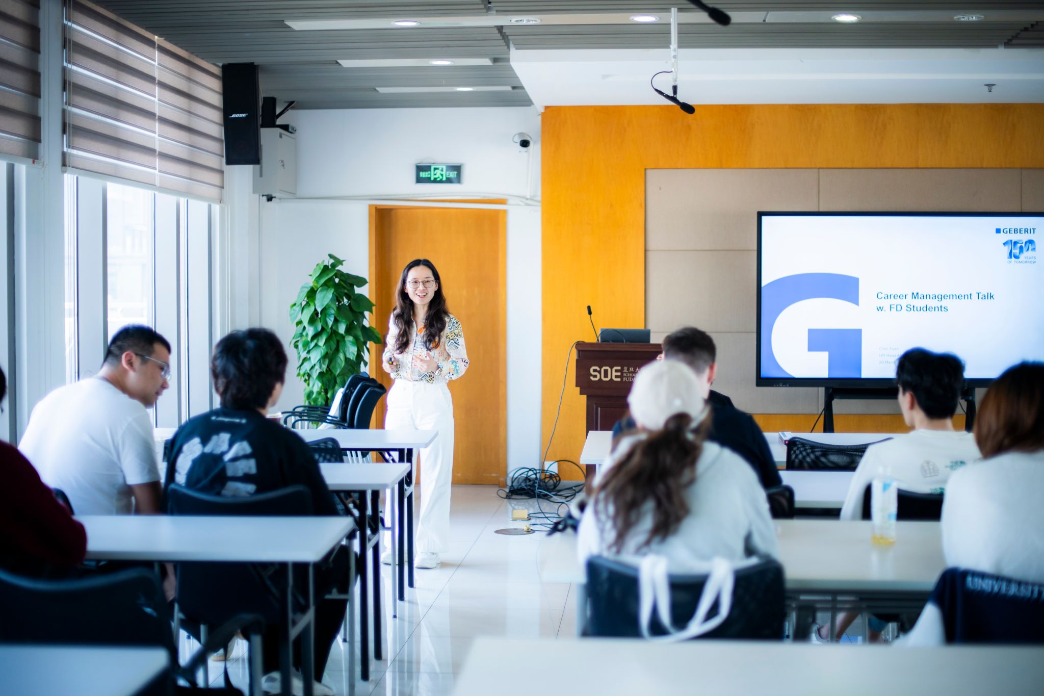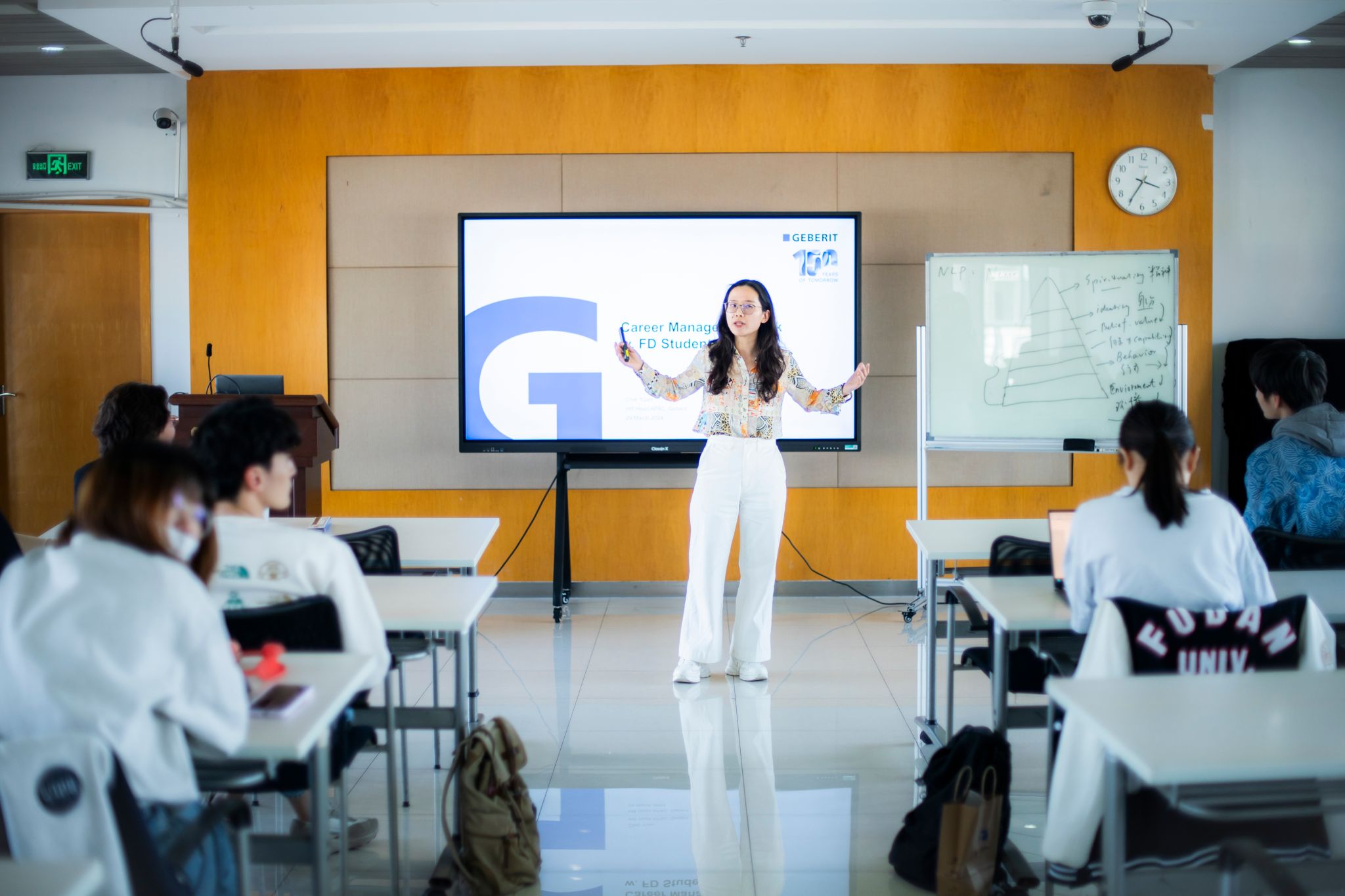 成人直播 国际合作办邀请到:星展银行(中国)有限公司人力资源部高级副总裁Fanny,托克(中国)人力资源总监William,复旦-杜伦DBA学员资深人力资源专家Rola,吉博力(上海)投资有限公司 亚太人力资源负责人Cher以及上海益持科技有限公司总经理助理Sara。为同学们开展了一场关于简历优化、面试技巧以及职业规划的讲座。